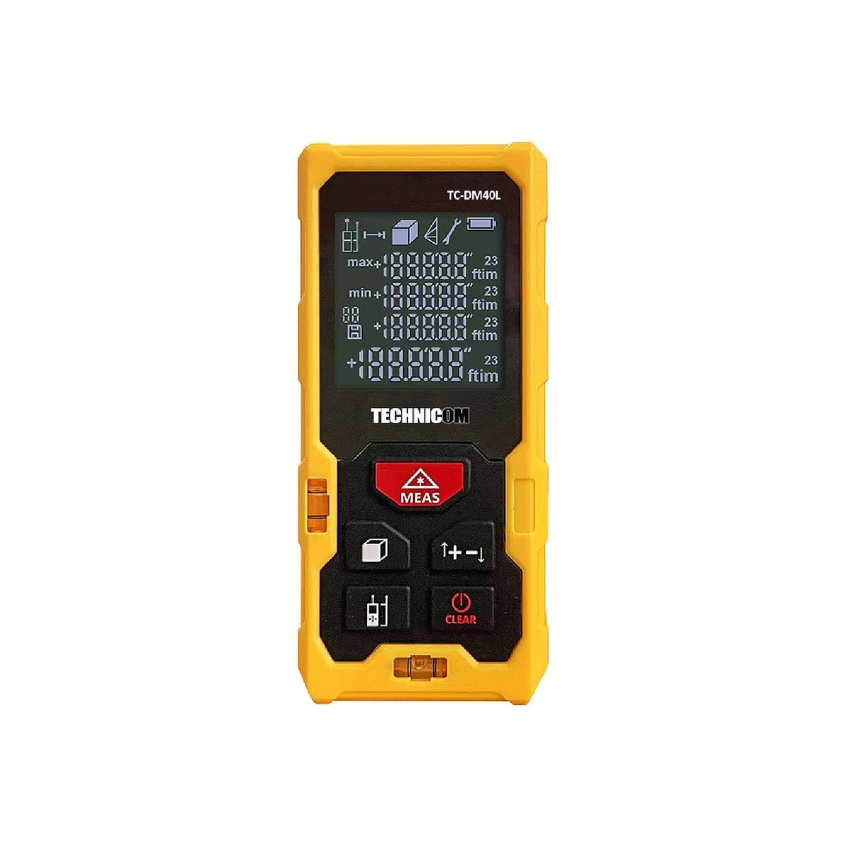 Лазерный дальномер TC-DM40L – небольшой, удобный, точный прибор для проведения измерений на расстоянии 40 метров. Все измерения можно проводить в метрах, футах или дюймах. Отличительными чертами данного дальномера являются: скорость проведения измерений 0,25с, информативный четырехстрочный дисплей, два пузырьковых уровня, отверстие под штатив ¼”, степень влагозащиты IP54. Данный прибор имеет 2 точки отсчёта и функцию измерения углов. C помощью лазерного дальномера TC-DM40L можно выполнять все основные типы измерений: расстояние до объекта, длина, ширина, высота, вычисление площади и объема, специфические измерения, такие как функция Пифагора.