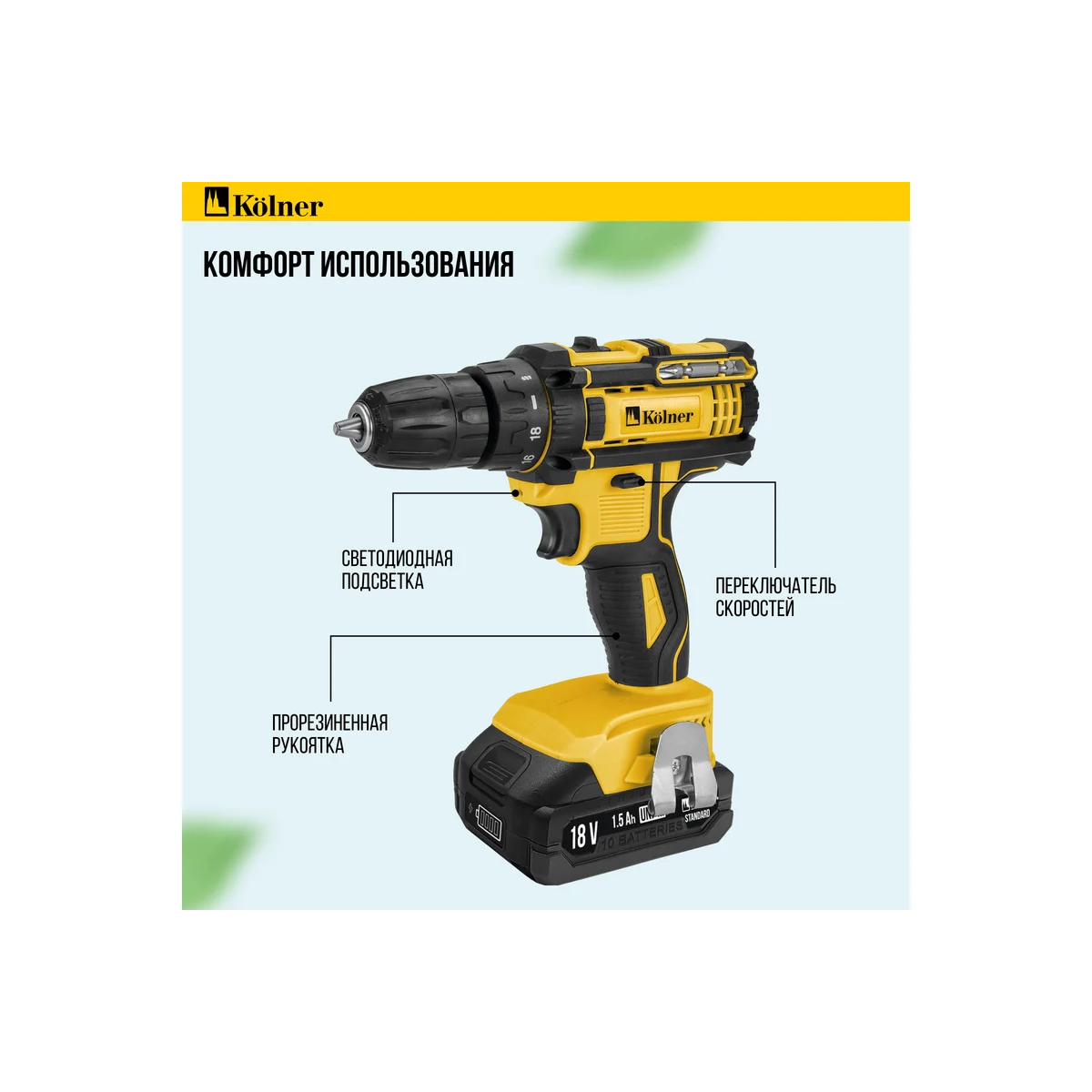 —Дрель-шуруповерт KOLNER KCD 18LC