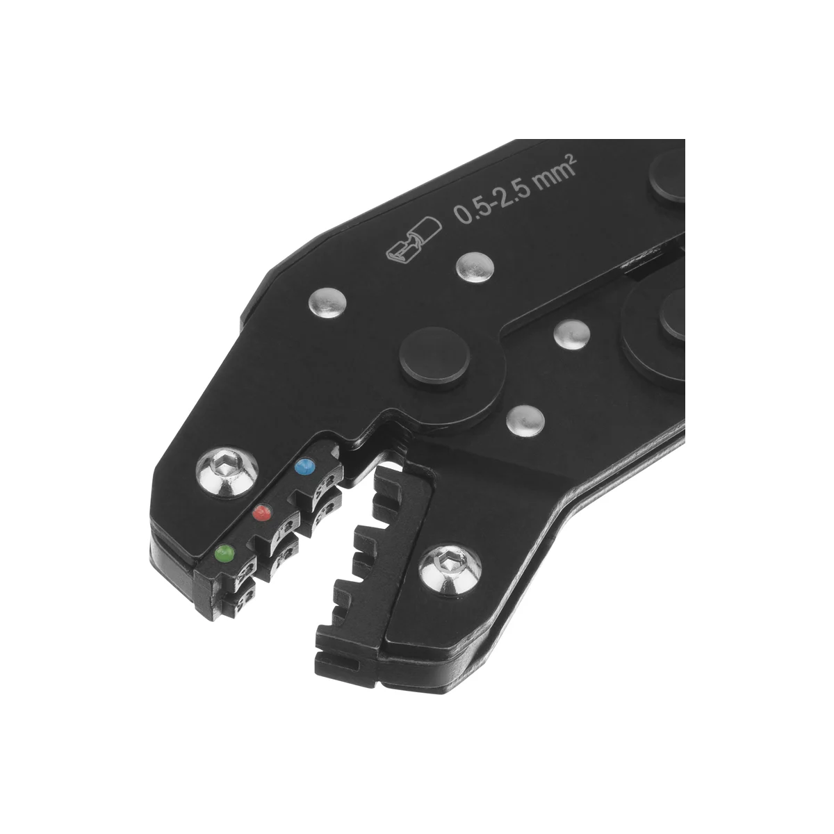 Клещи Denzel 17747 предназначены для обжима изолированных кольцевых наконечников НКИ и вилочных НВИ, разъемов плоских РПИ, гильз соединительных ГСИ сечением 0,5-2,5 мм². Инструмент пригодится частным и профессиональным мастерам при проведении электромонтажных работ.