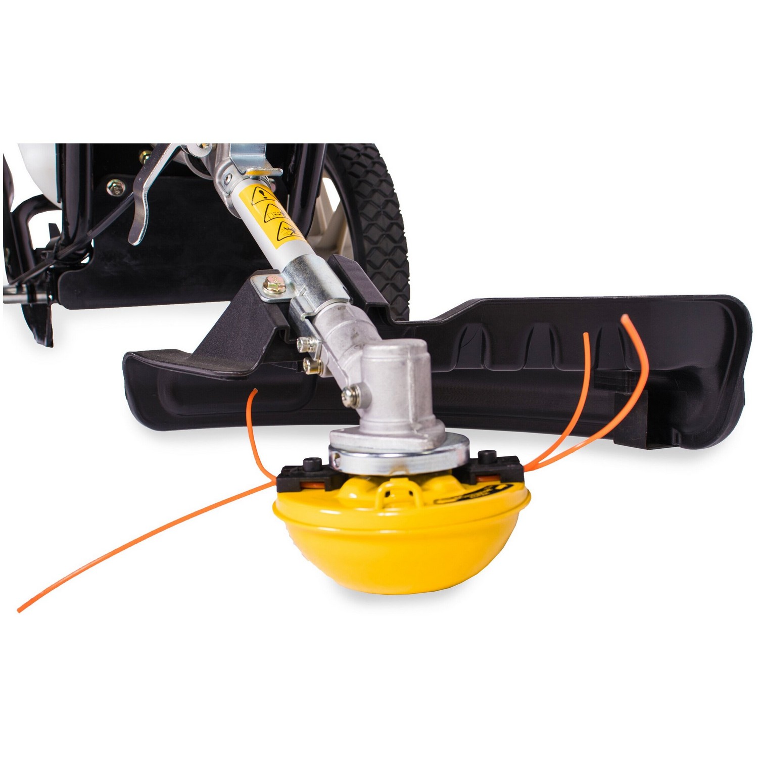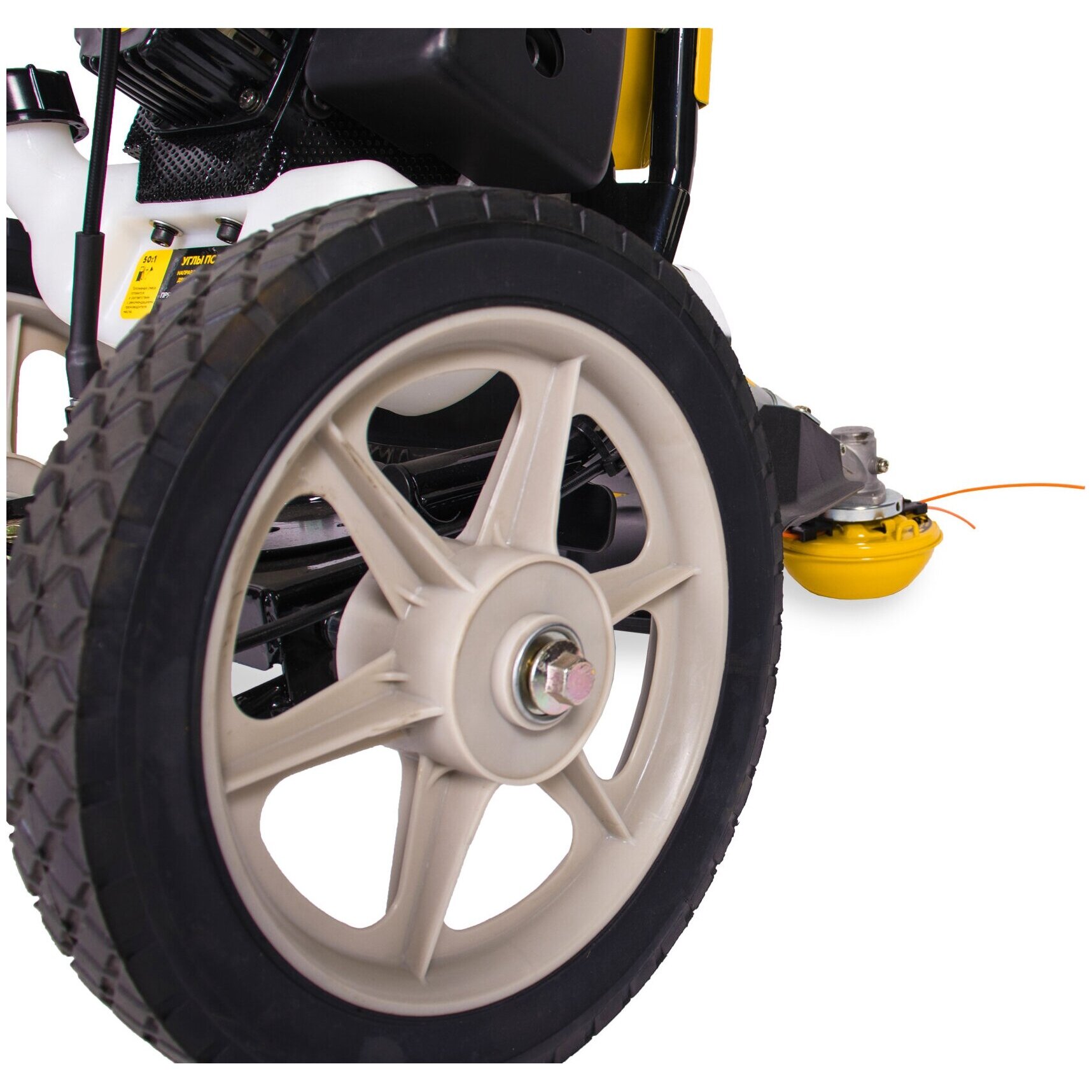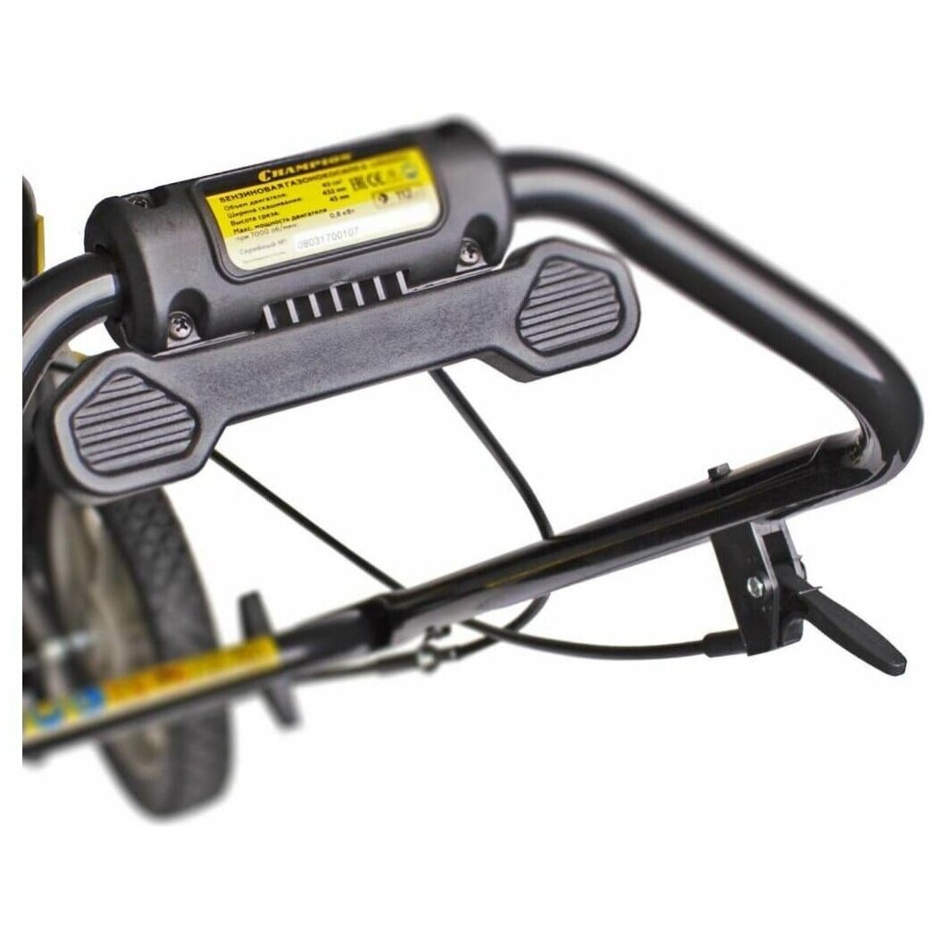 Бензиновый одноцилиндровый 2-х тактный двигатель с воздушным охлаждением. Праймер - легкий запуск мотора. Кожух предотвращает вылет скошенной травы. Удобно расположенная на корпусе двигателя кнопка зажигания позволяет остановить работу двигателя одним нажатием.