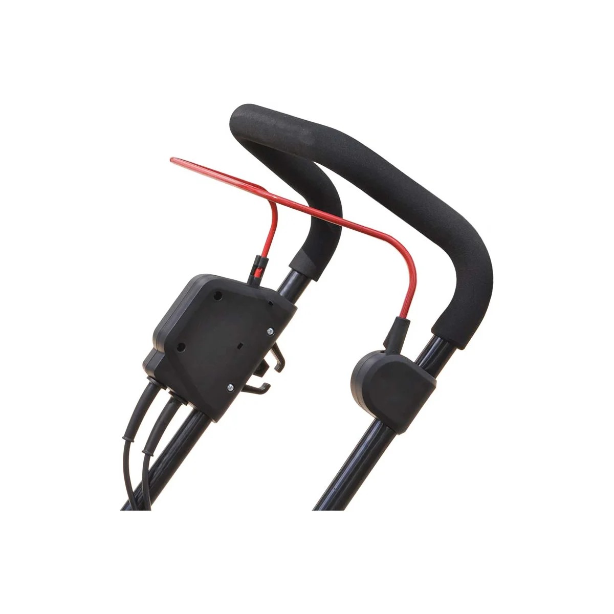 Скоба-выключатель, расположенная на рукоятке, позволяет более удобно управлять газонокосилкой, чем традиционный рычаг.