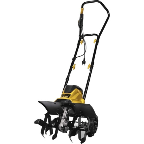 Минимум усилий. Не нужно прилагать усилия для заглубления инструмента - он уходит в землю под собственным весом. Удобство. Для надежной фиксации электрокабеля на рукоятке Champion EC1200 предусмотрен держатель. Защита. Крыло защищает оператора от летящей земли, предотвращает загрязнение корпуса.