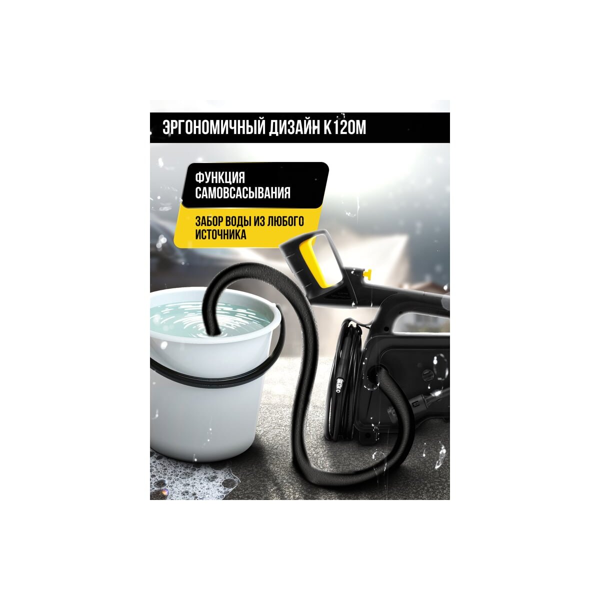 - Функция самовсасывания: позволяет использовать мойку без подключения к водопроводу