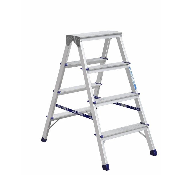 Алюминиевая двухсторонняя стремянка, две верхние ступени которой образуют ровную широкую площадку, на которой можно стоять или хранить инструменты. Фиксируется двумя крепкими ремнями. Подходит для бытового использования. Преимущества:- Благодаря своим компактным размерам, стремянку удобно хранить и транспортировать- Пластиковые наконечники придают стремянке отличную устойчивость, а пластиковые заглушки по бокам ступеней защищают работника от порезов- Ступени надёжно закреплены заклёпками к боковинам, гарантируя высокую грузоподъёмность стремянки- Широкие рифлёные ступени препятствуют случайному соскальзыванию ног во время проведения работ
