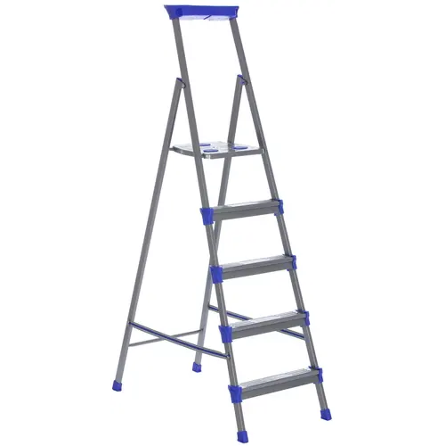 Стремянка имеет 5 ступеней, поэтому вы с легкостью сможете выбрать нужную вам рабочую высоту. Высота последней ступени значительна: она равна 107 см. Одним из преимуществ стремянки является наличие конструктивных элементов, препятствующих скольжению ног. Масса стремянки сравнительно невелика: она равна 6.7 кг.