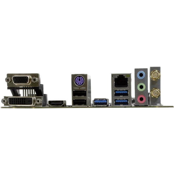 PS/2, 2 x USB 2.0, 3 x USB 3.2 Gen1, VGA, DVI, HDMI, RJ-45