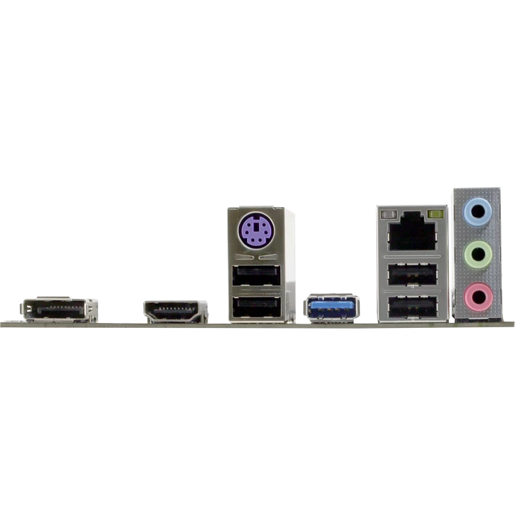 PS/2, 4 x USB 2.0, USB 3.2 Gen1, HDMI, DisplayPort, RJ-45
