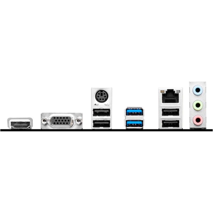PS/2, 4 x USB 2.0, 2 x USB 3.2 Gen1, VGA, HDMI, RJ-45