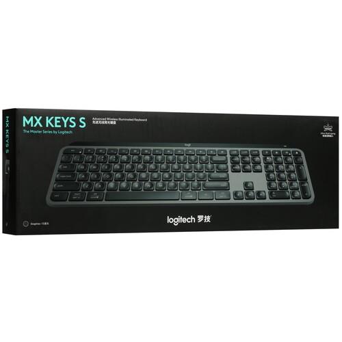 Клавиатура беспроводная Logitech MX Keys S [920-011600] оснащена 109 низкопрофильными клавишами с плоской поверхностью для снижения нагрузки на пальцы. Конструкцией корпуса из металла и пластика предусмотрено 8 дополнительных кнопок для доступа к мультимедийным и офисным программам. Чувствительный датчик автоматически включает подсветку при поднесении рук к аксессуару.