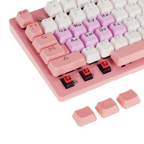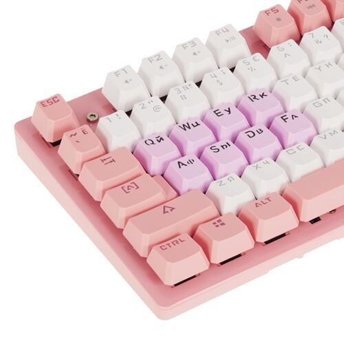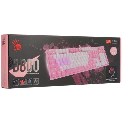 Клавиатура проводная A4Tech Bloody B800 выделяется оформлением в розово-белых оттенках и создана для поклонников компьютерных игр. Благодаря оптомеханическим переключателям с поддержкой технологии LK Light Strike достигается быстрый отклик на нажатия для точной реакции в играх. К тому же, переключатели отличаются длительным сроком службы. Для комфортной игры в условиях недостаточной освещенности реализована яркая оранжевая подсветка. Водозащищенная конструкция помогает сохранять работоспособность клавиатуры в случае пролития жидкости. Подключение клавиатуры A4Tech Bloody B800 осуществляется посредством USB-кабеля.