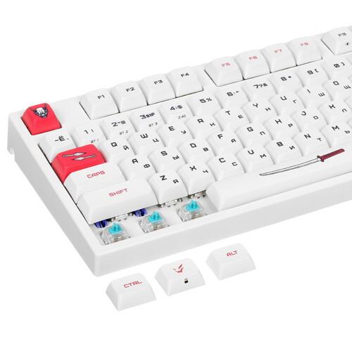 Клавиатура ARDOR GAMING Wakizashi [AG-ZD-87GT-XDA-HS-W] выделяется оригинальным оформлением. Она выполнена в корпусе белого цвета с красными накладками и рисунками на самурайскую тематику. Клавиатура оборудована 87 клавишами с механическими линейными переключателями Gateron Mint. Смазанные стабилизаторы и укороченный ход 2 мм обеспечивают точное срабатывание с плавным нажатием без лишнего шума.
