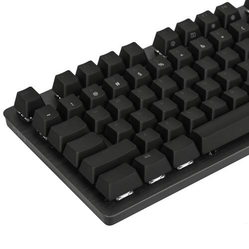 Корпус клавиатуры проводной Logitech G512 Carbon [920-009356] выполнен из металла. Материалу не характерно образование повреждений при воздействии агрессивных факторов. Основное звено модели – тактильные переключатели Logitech GX Brown. Они отличаются быстрым откликом на касания и помогают выйти победителем из насыщенных баталий. Аксессуар является механическим. Достоинство подобного вида заключается в высоком ресурсе, рассчитанном на 50 млн нажатий. Синхронизация производится через USB-кабель длиной 1.8 м.