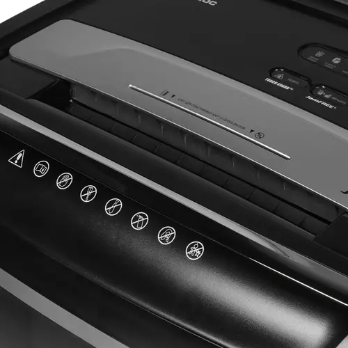 Лоток подачи рассчитан на 26 листов, благодаря чему устройство подходит для использования в небольших офисах, где нет большого потока документации. Корзина для отходов позволяет вмещать в себя 35 листов. Шредер сконструирован так, чтобы выдерживать большие нагрузки: он предусматривает функцию принудительного охлаждения, которая позволяет ему работать длительное время. Встроенная система энергосбережения позволяет при простое от 1 до 6 минут переходить уничтожителю в спящий режим. Система TouchGuard предусматривает наличие датчика, прикосновение к которому вызывает остановку ножей, что способствует дополнительной безопасности.