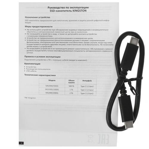 Внешний SSD Kingston SXS2000 – компактное запоминающее устройство на основе твердотельного диска, которое обладает емкостью 500 ГБ и высоким уровнем быстродействия. Накопитель выполнен в металлическом корпусе и поставляется с эластичным чехлом. Защита класса IP54 гарантирует устойчивость устройства к воздействию воды и пыли, повышая его надежность в процессе интенсивной эксплуатации. В комплекте с Kingston SXS2000 предусмотрен кабель с разъемом USB Type-C, что гарантирует удобство синхронизации и широкую совместимость.