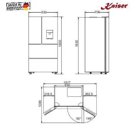Минимальные размеры для встраивания (ШxГxВ), мм836/706/1830