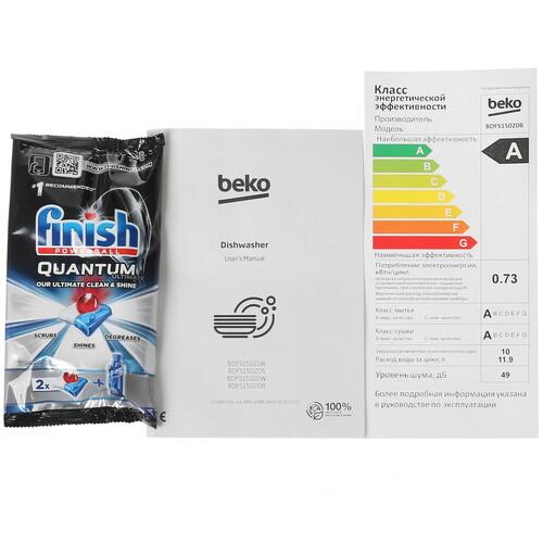 За 1 раз посудомоечная машина Beko BDFS15020B нейтрализует загрязнения не только с тарелок и громоздкой кухонной утвари, но также ложек, чашек и вилок – специально для этого ее конструкцией предусмотрен отдельный лоток и вместительные полки. Ваши домочадцы не любят посторонние звуки в процессе работы тех или иных приборов? Просто воспользуйтесь режимом отложенного старта, который автоматически запустит ассистентку во время их отсутствия. Никаких дополнительных расходов на обслуживание устройства – достаточно приобрести капсулы «3-в-1», содержащие необходимую соль и ополаскиватель.