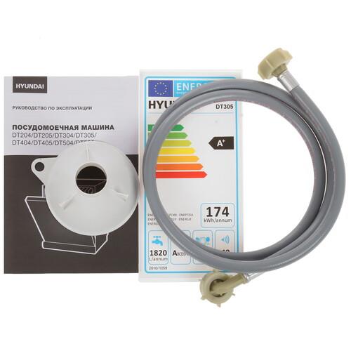 Посудомоечная машина Hyundai DT305 сочетает стильный дизайн, простое управление и широкие функциональные возможности. Обладая компактными размерами, она характеризуется вместимостью 6 комплектов посуды и за один цикл потребляет не более 6.4 л воды. Панель управления с информативным дисплеем и кнопками позволяет легко выбирать необходимые параметры мытья в зависимости от объема и уровня загрязненности.