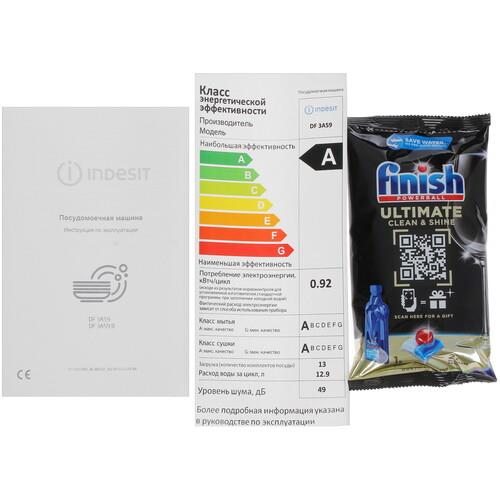 Посудомоечная машина Indesit DF 3A59 способна за один цикл очищать до 13 комплектов столовых приборов. Для разной степени загрязненности и объема посуды предусмотрены 5 автоматических программ, которые управляются поворотным переключателем. Для удобного размещения кастрюль, тарелок, чашек, столовых принадлежностей внутри установлены 2 выдвижные корзины с дополнительными навесными полками.