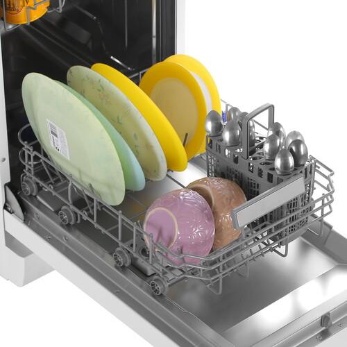 Наличие таймера отсрочки поможет активировать программу мойки в установленное время. Чтобы загрузить большую посуду, можно отрегулировать по высоте среднюю корзину. Машина использует конденсационную сушку, при которой дверца автоматически открывается для естественной циркуляции воздуха.