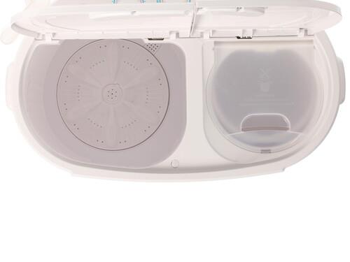 Удобство использования обеспечивается вертикальной загрузкой и двумя откидными крышками, ведущими в отделение для стирки и секцию с отжимной центрифугой.