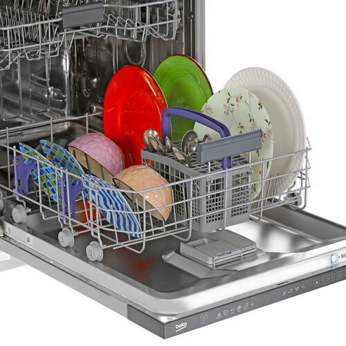 Встраиваемая посудомоечная машина Beko DIN26D26 поможет избавиться от долгого мытья посуды вручную. Прибор отличается экономичностью, поскольку за один цикл расходует 9.5 л воды. Вместимость посудомойки достигает 15 комплектов: вы сможете насладиться идеальным результатом, получив посуду, блистающую чистотой, на которой не будет подтеков и разводов. Защита от протечек обеспечивает безопасную эксплуатацию модели. Конструкция аппарата предусматривает наличие дисплей, с которым будет проще управлять работой, а также отслеживать состояние посудомойки.