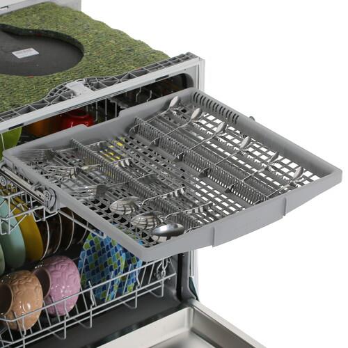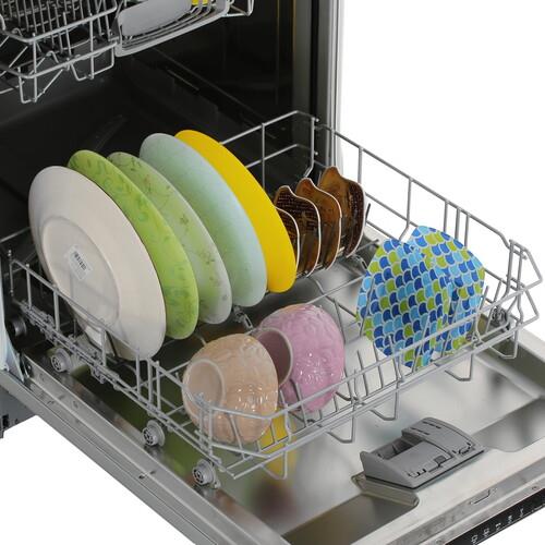 Встраиваемая посудомоечная машина Bosch SMV25EX02E устанавливается в нишу размерами 60x81.5-87.5x55 см. Она работает тихо благодаря инверторному двигателю EcoSilence Drive. Для экономии воды реализована система ActiveWater. Благодаря умному управлению и технологии сенсоров прибор определяет, сколько воды необходимо для каждой загрузки, анализирует степень загрязненности и количество посуды. Прибор поддерживает загрузку 13 комплектов посуды и расходует до 9.5 л воды.