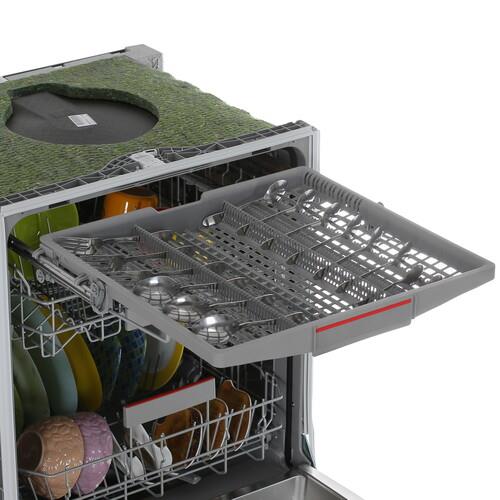Встраиваемая посудомоечная машина Bosch SMV4HVX31E в стильном серебристом корпусе радует широким функционалом и модулем Wi-Fi. Вы можете управлять настройками через мобильное приложение из любого места. Индикатор «Луч на полу» помогает визуально отслеживать время окончания программы. Эргономичная система корзин с регулировкой верхнего ящика позволяет удобно размещать в ПММ до 13 комплектов посуды.