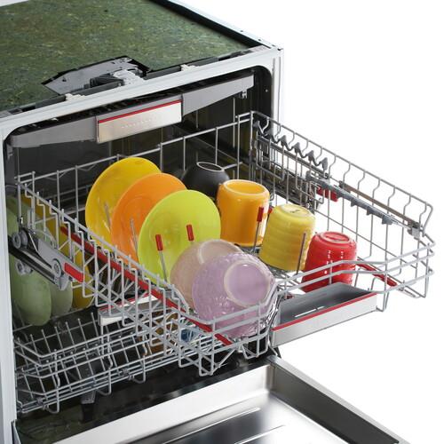 Встраиваемая посудомоечная машина Bosch SMV8YCX02E на 14 комплектов с 3 корзинами. Верхний разбрызгиватель для эффективной мойки при полной загрузке и минералы цеолиты для быстрой сушки и экономии энергии. Проецируемый на пол луч показывает текущий этап и время до конца цикла. Управляется голосом или через мобильное приложение, поддерживает 8 программ мойки и самоочистки, таймер отсрочки. Сенсор чистоты воды определяет степень загрязнения посуды и подбирает оптимальные параметры цикла.