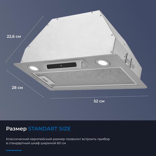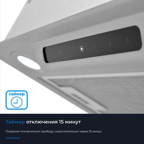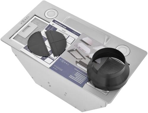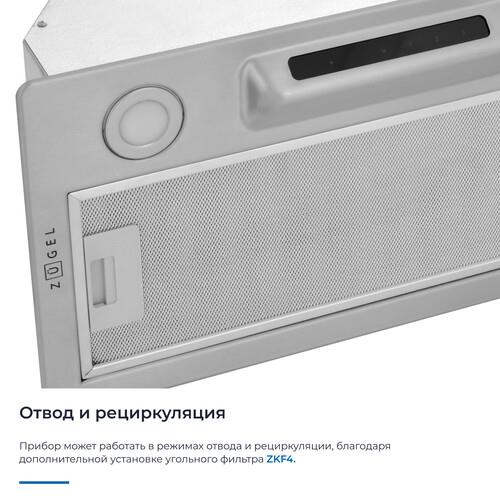 Мощный мотор с лёгкостью очистит воздух в помещении до 32 м². Расположенная под наклоном сенсорная панель управления исключает дискомфорт в использовании и реагирует на нажатия с первого раза. Классический европейский размер позволит встроить прибор в стандартный шкаф шириной 60 см. Таймер позволит отключиться прибору самостоятельно через 15 минут. Две мощные светодиодные лампы по 2 Вт позволят полноценно осветить рабочую поверхность. Переходник в комплекте позволит подключить воздуховод обоих размеров. Прибор может работать в режимах отвода и рециркуляции, благодаря дополнительной установке угольного фильтра ZKF4.