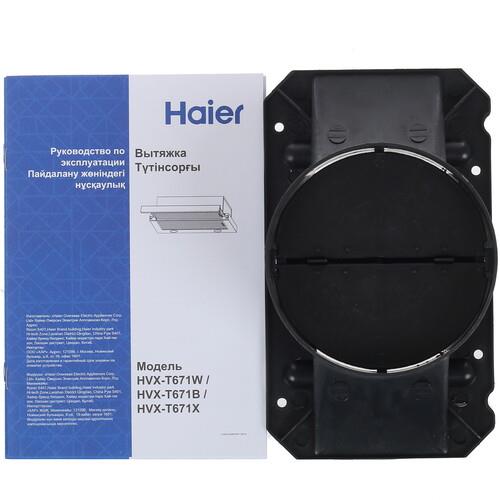 За счет жирового фильтра в зонт вытяжки не попадают испарения пищи и загрязнения из воздуха. При желании можно дополнить прибор угольным фильтром. Вытяжка полновстраиваемая Haier HVX-T671W дополнена 2 светодиодными лампами, благодаря которым над рабочей поверхностью можно создать уютное неяркое освещение.