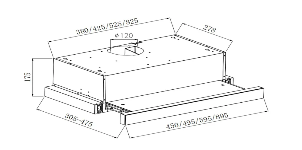 Вытяжка легко устанавливается в подвесной шкаф над плитой. Минимальная высота над электрической плитой – 65 см, над газовой – 75 см. Диаметр воздуховода составляет 120 мм.