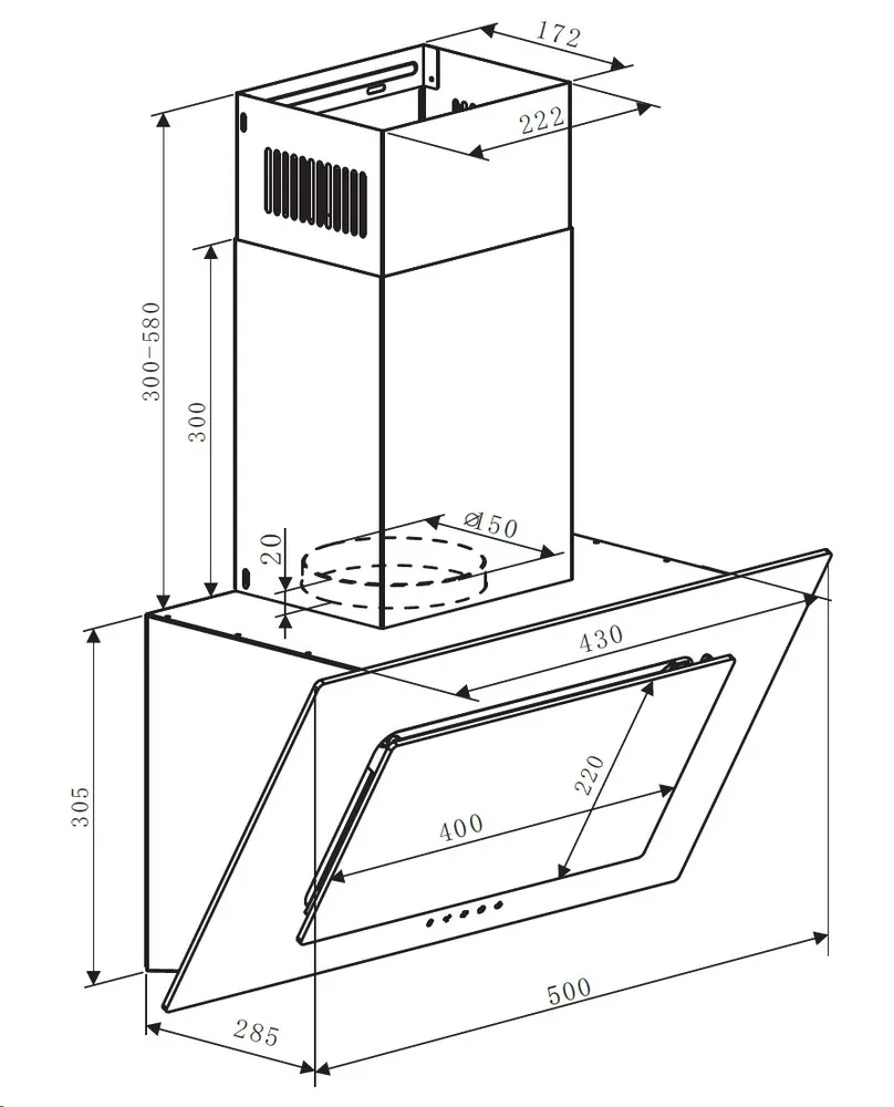 • Компактность: Ширина вытяжки всего 50 см, что позволяет установить ее даже в небольших кухнях.