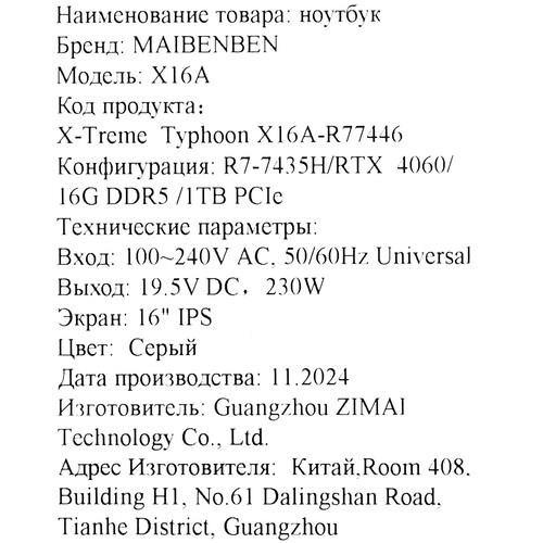 Maibenben X16A – это производительный ноутбук, который станет идеальным помощником в работе и учебе. Он выделяется стильным дизайном и обеспечивает высокую производительность, делая вашу повседневную жизнь комфортной и продуктивной.