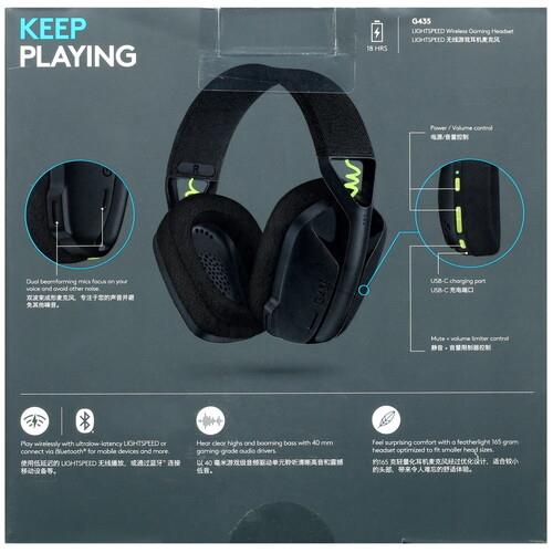 Радиочастотная гарнитура Logitech G435 LIGHTSPEED поддерживает два способа подключения – Bluetooth и радиоканал. Модель имеет закрытое акустическое оформление. Наушники устройства надежно ограждают пользователя от звуков внешнего мира. Воспроизведение осуществляется в широком частотном диапазоне – от 20 Гц до 20 кГц. Передача голоса осуществляется «усилиями» микрофона, встроенного в корпус.