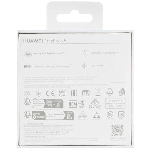 Система шумоподавления минимизирует внешние шумы. Конструкция IPX4 гарантирует устойчивость к воздействию пыли и влаги. Наушники Huawei Freebuds 5 быстро синхронизируются с мобильным устройством по Bluetooth. Время автономной работы наушников составляет до 5 часов на одном полном заряде и увеличивается до 30 часов при подзарядке от кейса.