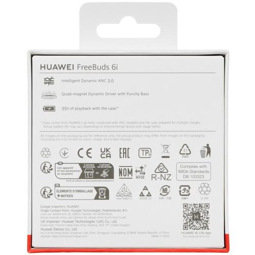 Динамический излучатель с диафрагмой 11 мм и 4 магнитами формирует четкое объемное звучание. Система с тремя микрофонами и технология интеллектуального шумоподавления устраняет помехи и подавляет посторонние звуки в процессе общения. Одного заряда встроенного аккумулятора хватает до 8 часов воспроизведения музыки. Зарядный кейс продлевает автономность гарнитуры Huawei Freebuds 6i до 35 часов.