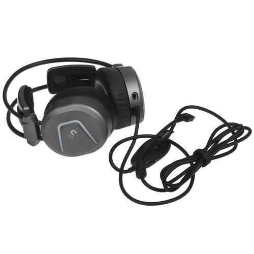 Проводная гарнитура A4Tech Bloody MC750 с системой виртуального объемного звучания 7.1 способствует максимальному погружению в игры. В ней используются динамические излучатели диаметром 50 мм с неодимовыми магнитами. Микрофон на подвижной штанге благодаря ветрозащите и шумоподавлению снижает риск появления помех при передаче голоса.