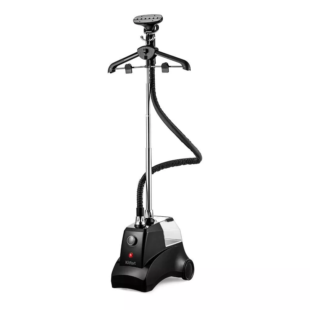 Вешалка и телескопическая стойка складные, а корпус отпаривателя компактный.