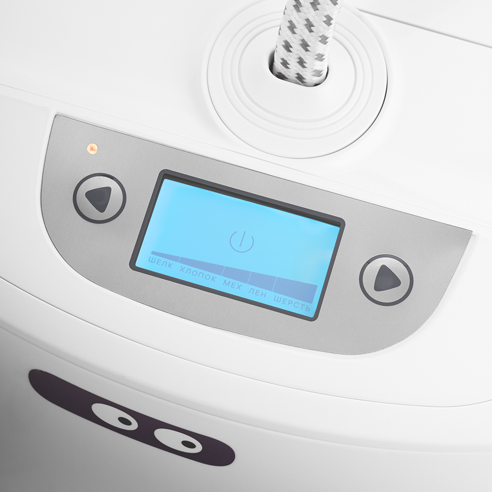 обрабатывает вещи мощной струёй горячего пара, проводя