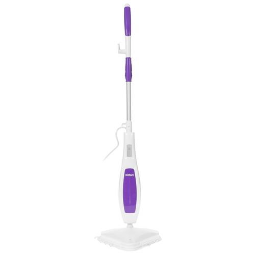 Пароочиститель Kitfort КТ-1056 способен устранять загрязнения и дезинфицировать обрабатываемые поверхности благодаря воздействию горячего пара. Прибор выполнен в виде швабры и оснащен 2 сменными мягкими тряпками для деликатной обработки гладких напольных покрытий. Они фиксируются на насадке при помощи липучек. Для чистки ковровых изделий предусмотрена специальная рамка.