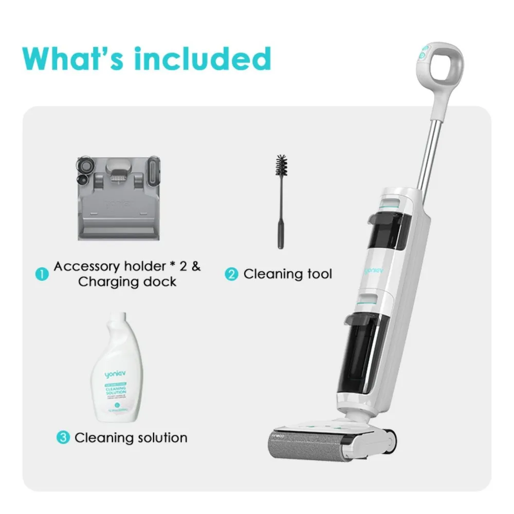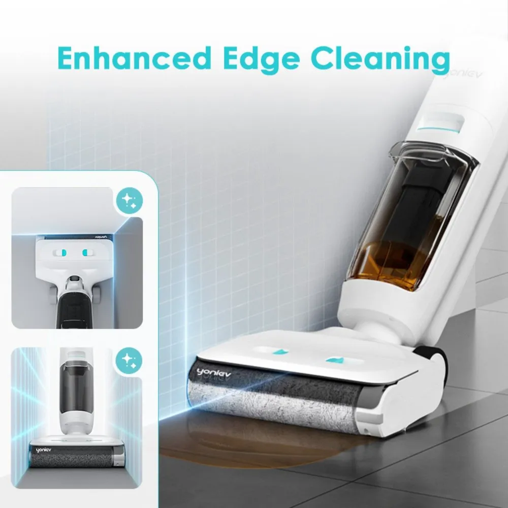 Yoniev пылесос Wet & Dry U5 – беспроводная модель. Она предназначена для единовременного выполнения двух типов уборки — сухой и влажной. Щетка примыкает к стене с одной стороны, позволяя проводить очистку вдоль плинтусов. Устройство удаляет пятна любой стойкости. Щетку можно наклонять на 30°. Это удобно для очищение полов и удаления пыли под мебелью. можно собрать пыль, скопившуюся под мебелью. Благодаря разделению потоков и двум герметичным емкостям для жидкости для влажной уборки используется только чистая вода. Детали устройства можно промывать под водой.