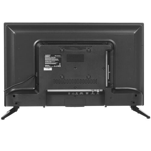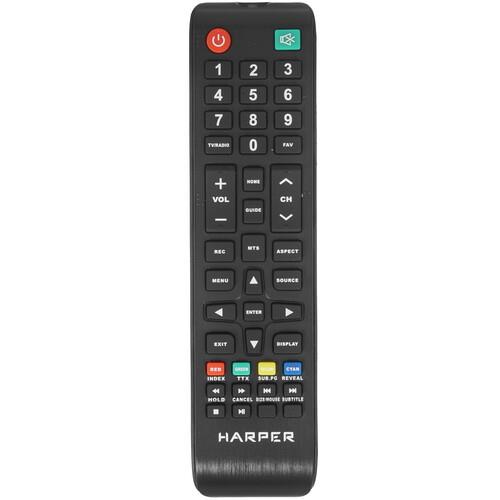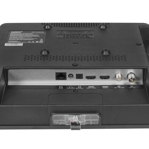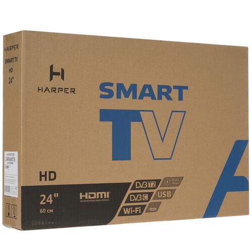 Прибор Harper 24R490TS с прямым черным корпусом поставляется со съемными боковыми ножками и ПДУ. На задней части корпуса имеется 2 HDMI- и 2 USB-порта, 5 входов аудио/видео, коаксиальный и выход для наушников, а также сетевой адаптер и интерфейсы DVB CAM, CI/PCMCIA. К телевизору можно подключить мышь с клавиатурой, настроить часы, таймер сна, телегид, ТВ-замок и прочие полезные функции.