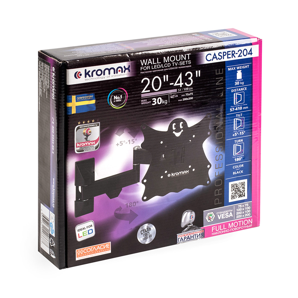 Дополнительная информация: угол наклона +5 -15°, угол поворота 180°, вращение экрана ±5°
