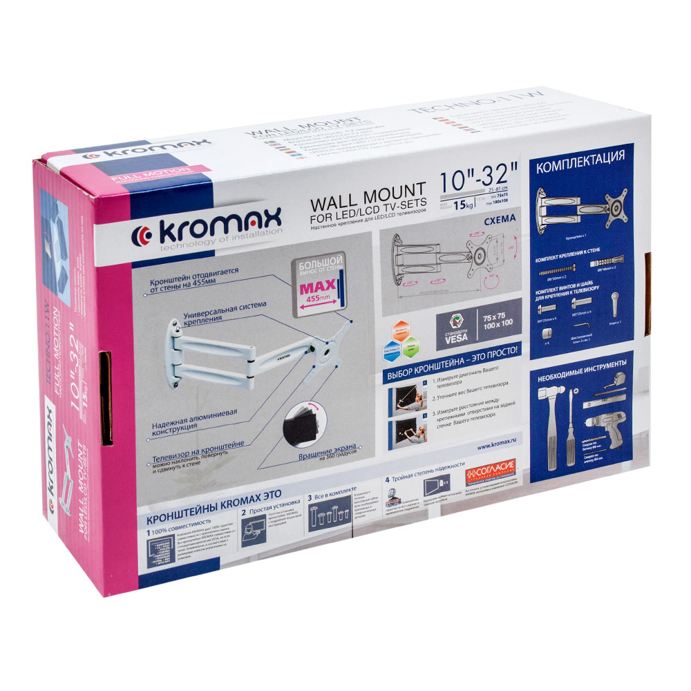 Диагональ ТВ: 10" - 32"