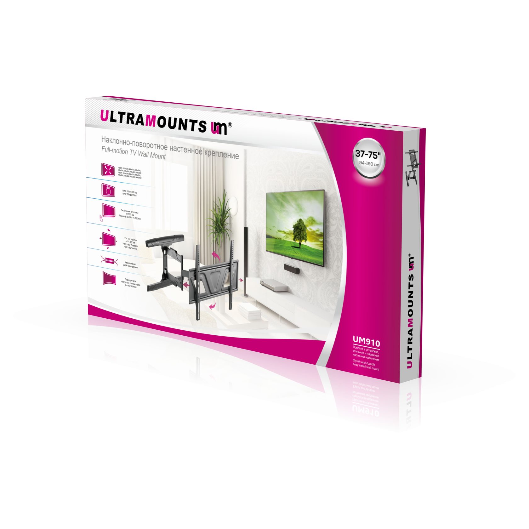 Диагональ экрана: 37" - 75"