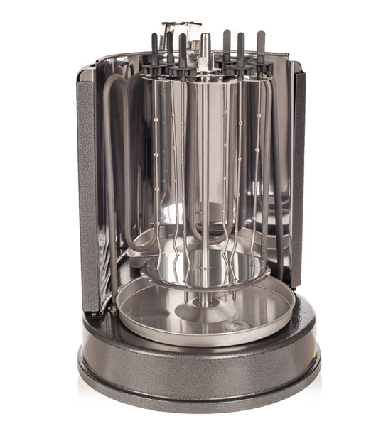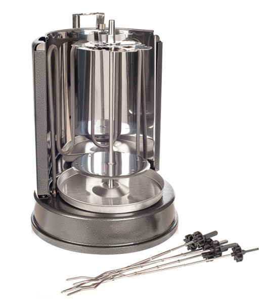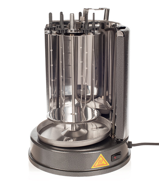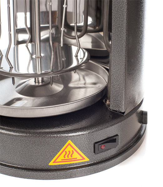Особенности: 6 шампуров из нержавеющей стали медленно вращаются, обеспечивая равномерную обжарку. Под шампурами расположена металлическая чаша для сбора стекающего жира.