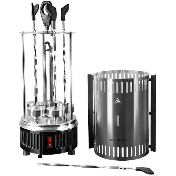 Частота вращения шампуров: 2 об/мин. 6 шампуров в комплекте.