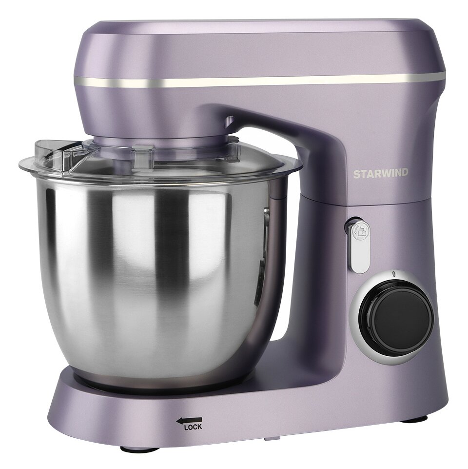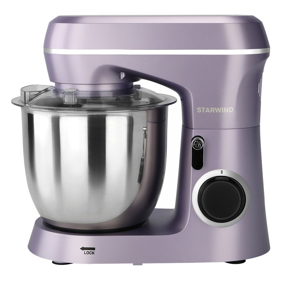 Миксер планетарный StarWind SPM6162 станет практически незаменимым помощником в вашем доме или квартире. Этот бытовой прибор создан с учетом всех современных технологий, пользоваться устройством – сплошное удовольствие. Техника сразу привлекает к себе внимание футуристичным дизайном, корпус лавандового цвета приковывает взгляды гостей. Мощность планетарного миксера составляет 1300 Ватт, а объем предусмотренной в конструкции емкости – 4,5 литра. Бытовой прибор изготовлен из высокопрочной пластмассы, а чаша – на основе нержавейки. В комплекте предусмотрены три насадки, крюк для теста, удобный венчик, а также лопатка.
