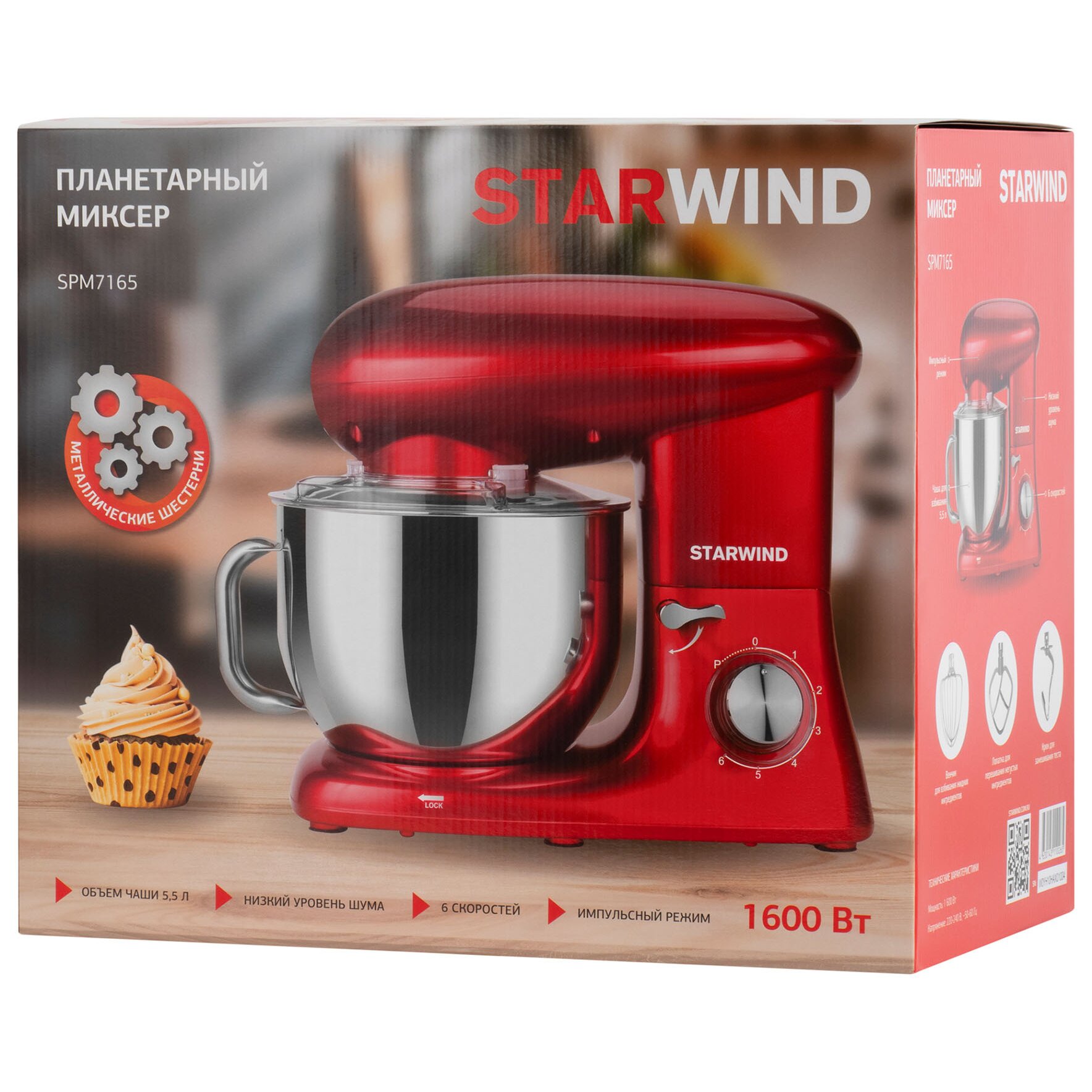 Миксер планетарный StarWind SPM7165 представляет собой устройство, которое по внешнему виду и функционалу схоже со сложной кухонной машиной. Бытовая техника справится с замешиванием дрожжевого теста, взбиванием и смешиванием всевозможных ингредиентов. Прибор незаменим для тех хозяек, которые любят часто готовить. Мощность бытового прибора составляет порядка 1600 Ватт, а объем резервуара для ингредиентов – 5,5 литра. Опционально предусмотрено шесть режимов работы, поэтому подобрать вариант с учетом специфики блюда не составит особого труда. Миксер достаточно мощный, изготовлен из пластика и нержавеющей стали. Корпус яркого красного цвета сразу привлечет к себе внимание гостей.