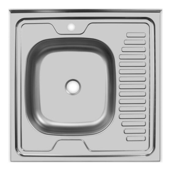 Такая раковина идеально подойдет для небольшой кухни. Чаша глубиной 120 мм оборудована малым выпускным отверстием 1 1/2ʺ. Перелив не предусмотрен. На корпусе изделия предусмотрена площадка для установки смесителя. Накладки на дне мойки из специального противошумного состава поглощают шум от льющейся воды.